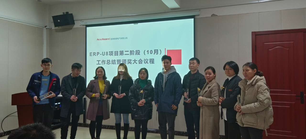 距離公司正式上線U8項目已經半年,已經逐步步入第二階段,溫州瑞睿電氣有限公司為鼓勵員工的積極性,在公司六樓多媒體室舉行“ERP-U8項目第二階段工作總結暨頒獎大會”。大會**項議程,由信息中心總監朱明勤發表講···